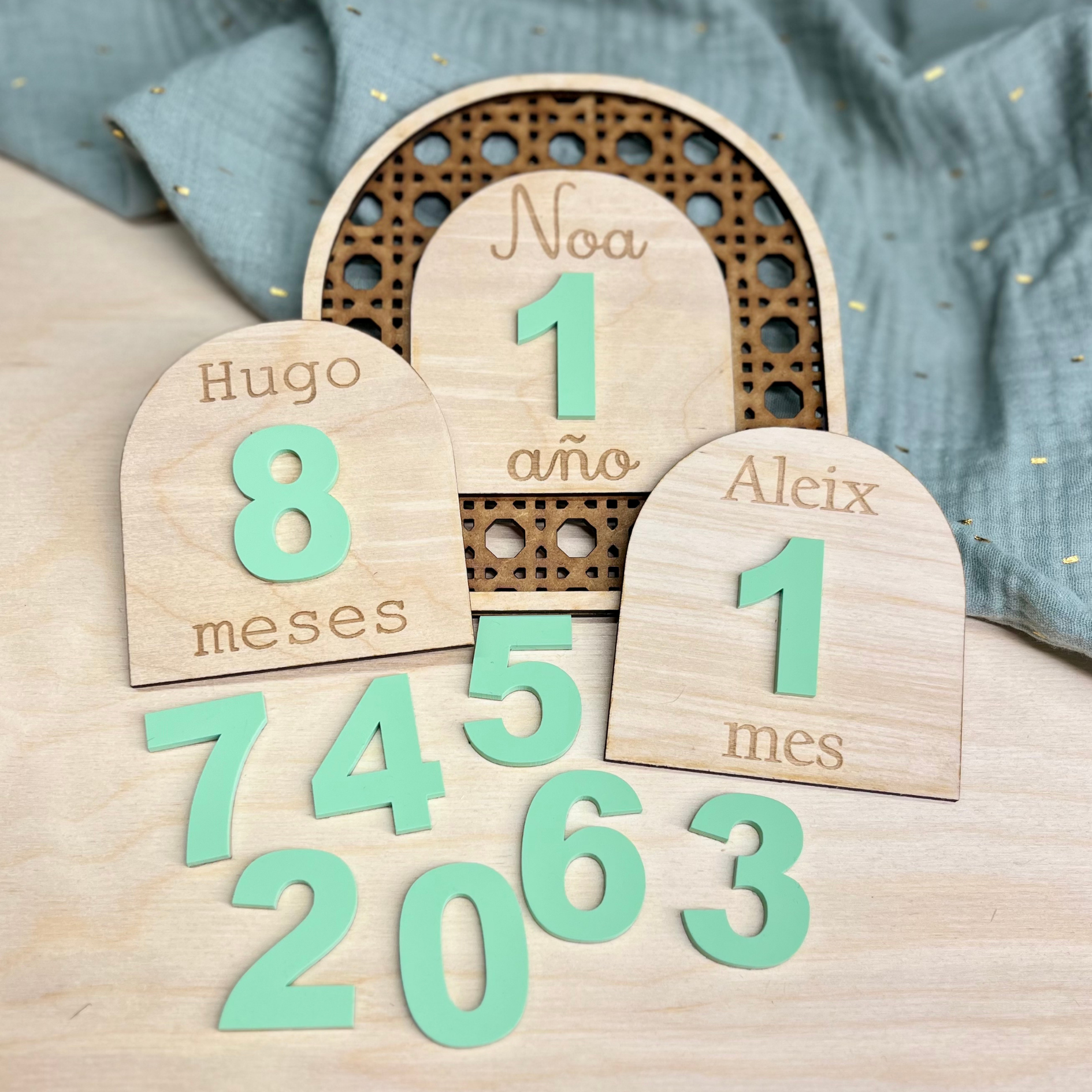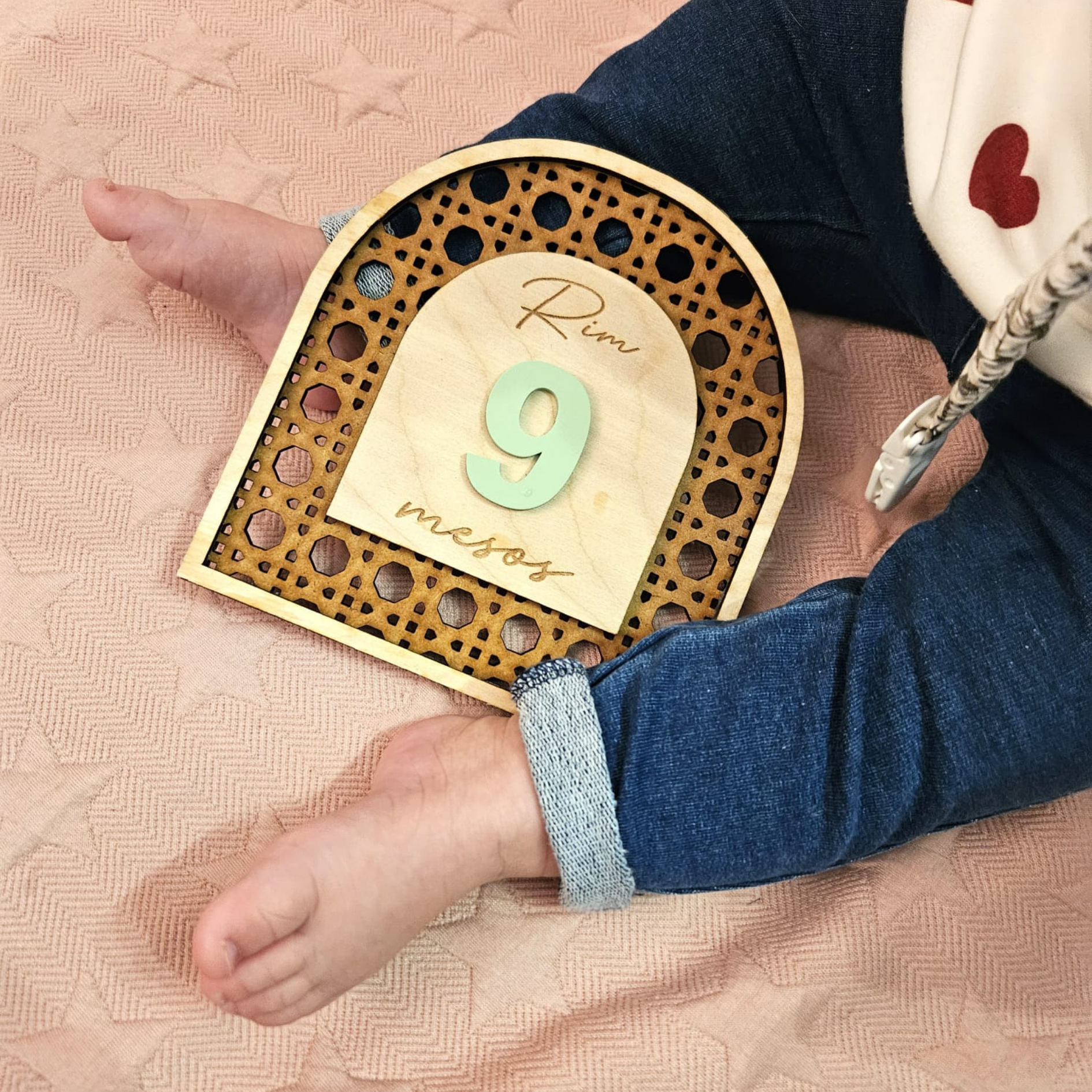 Celebra el crecimiento de tu bebé mes a mes con nuestro cumplemes de madera personalizado, un accesorio ideal para crear recuerdos únicos y fotografías llenas de encanto.